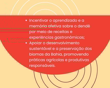 O Festival do Dendê nasce do compromisso com o empoderamento feminino e com a valorização das mulheres que preservam as tradições culinárias e fortalecem suas comunidades.